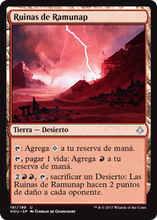 | Rules | : Add . , Pay 1 life: Add . , , Sacrifice a Desert: Ramunap Ruins deals 2 damage to each opponent. |