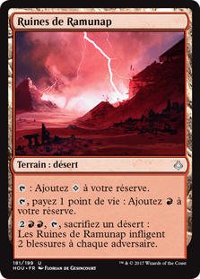 , , Sacrifice a Desert: Ramunap Ruins deals 2 damage to each opponent.