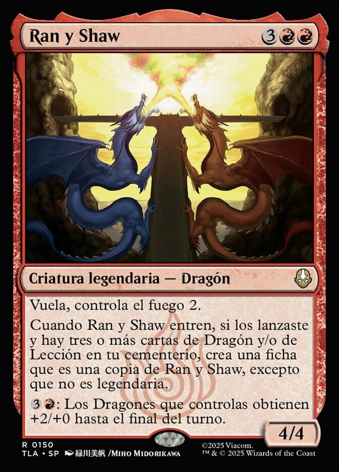 | Rules | Flying, firebending 2 When Ran and Shaw enter, if you cast them and there are three or more Dragon and/or Lesson cards in your graveyard, create a token that's a copy of Ran and Shaw, except it's not legendary. : Dragons you control get +2/+0 until end of turn. |