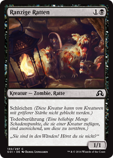 | Rules | Skulk (This creature can't be blocked by creatures with greater power.) Deathtouch (Any amount of damage this deals to a creature is enough to destroy it.) |