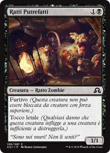| Rules | Skulk (This creature can't be blocked by creatures with greater power.) Deathtouch (Any amount of damage this deals to a creature is enough to destroy it.) |