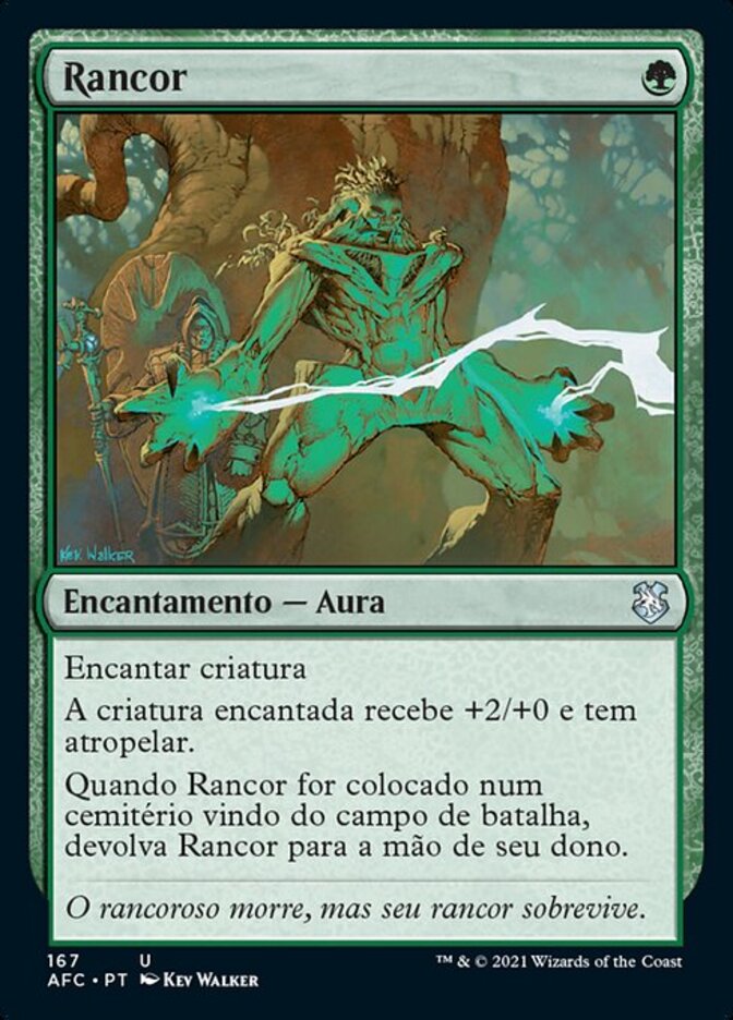 | Rules | Enchant creature Enchanted creature gets +2/+0 and has trample. When Rancor is put into a graveyard from the battlefield, return Rancor to its owner's hand. |