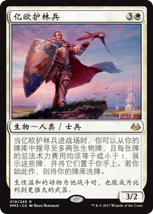 | Rules | When Ranger of Eos enters the battlefield, you may search your library for up to two creature cards with mana value 1 or less, reveal them, put them into your hand, then shuffle. |