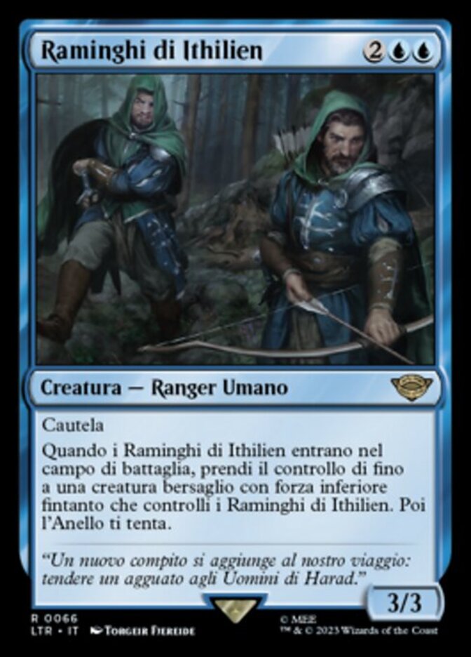 | Rules | Vigilance When Rangers of Ithilien enters the battlefield, gain control of up to one target creature with lesser power for as long as you control Rangers of Ithilien. Then the Ring tempts you. |