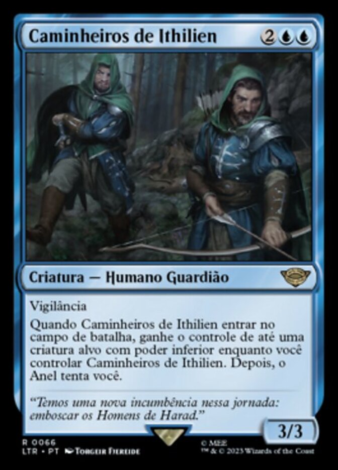 | Rules | Vigilance When Rangers of Ithilien enters the battlefield, gain control of up to one target creature with lesser power for as long as you control Rangers of Ithilien. Then the Ring tempts you. |