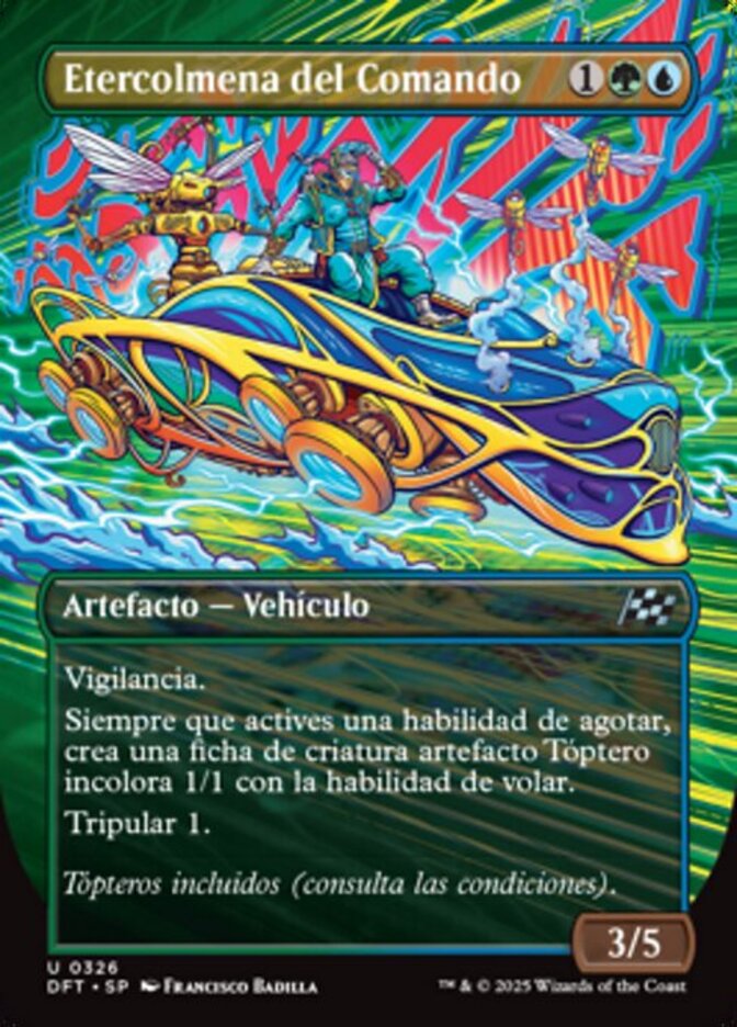 | Rules | Vigilance Whenever you activate an exhaust ability, create a 1/1 colorless Thopter artifact creature token with flying. Crew 1 (Tap any number of creatures you control with total power 1 or more: This Vehicle becomes an artifact creature until end of turn.) |