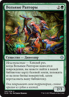 | Rules | Enrage — Whenever Ranging Raptors is dealt damage, you may search your library for a basic land card, put it onto the battlefield tapped, then shuffle. |