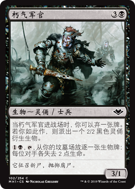 | Rules | When Rank Officer enters the battlefield, you may discard a card. If you do, create a 2/2 black Zombie creature token. , , Exile a creature card from your graveyard: Each opponent loses 2 life. |