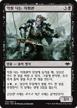 | Rules | When Rank Officer enters the battlefield, you may discard a card. If you do, create a 2/2 black Zombie creature token. , , Exile a creature card from your graveyard: Each opponent loses 2 life. |