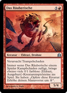 | Rules | Trample Whenever Rapacious One deals combat damage to a player, create that many 0/1 colorless Eldrazi Spawn creature tokens. They have "Sacrifice this creature: Add ." |