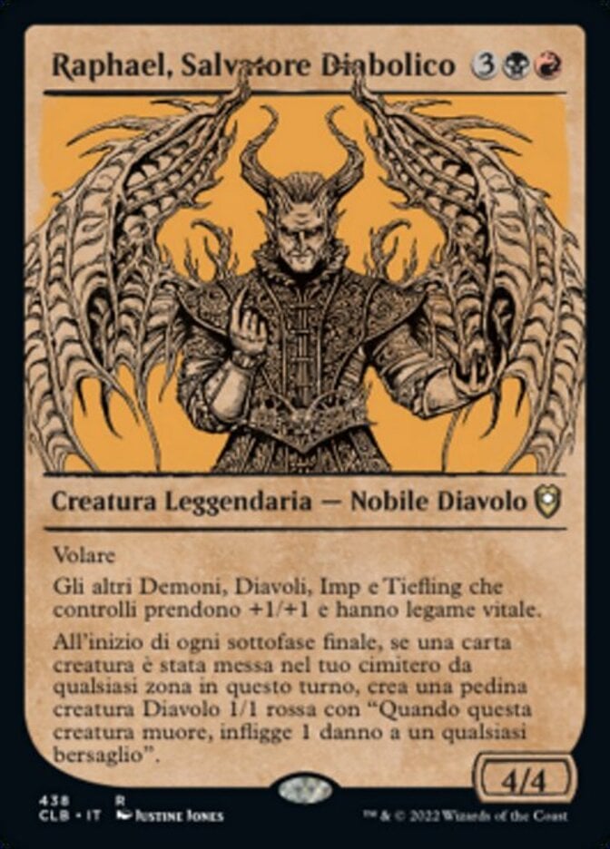| Rules | Flying Other Demons, Devils, Imps, and Tieflings you control get +1/+1 and have lifelink. At the beginning of each end step, if a creature card was put into your graveyard from anywhere this turn, create a 1/1 red Devil creature token with "When this creature dies, it deals 1 damage to any target." |