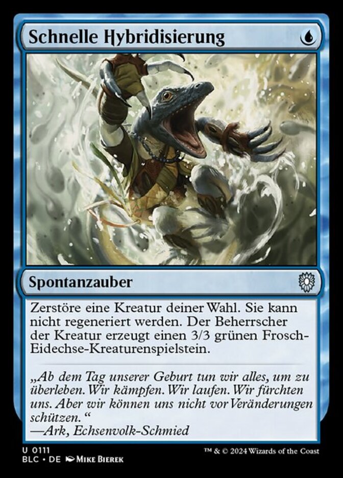 | Rules | Destroy target creature. It can't be regenerated. That creature's controller creates a 3/3 green Frog Lizard creature token. |