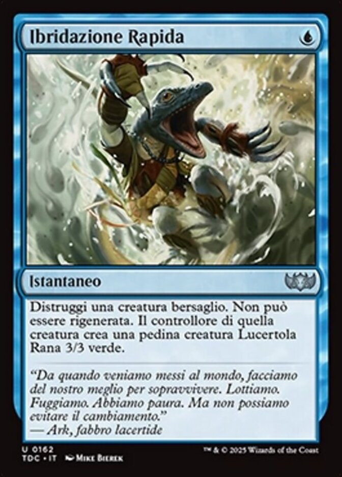 | Rules | Destroy target creature. It can't be regenerated. That creature's controller creates a 3/3 green Frog Lizard creature token. |