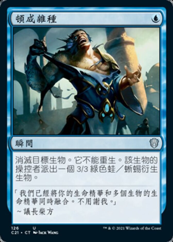 | Rules | Destroy target creature. It can't be regenerated. That creature's controller creates a 3/3 green Frog Lizard creature token. |
