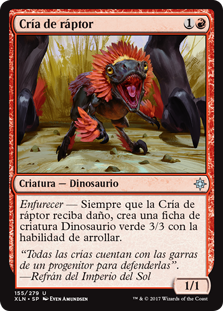 | Rules | Enrage — Whenever Raptor Hatchling is dealt damage, create a 3/3 green Dinosaur creature token with trample. |