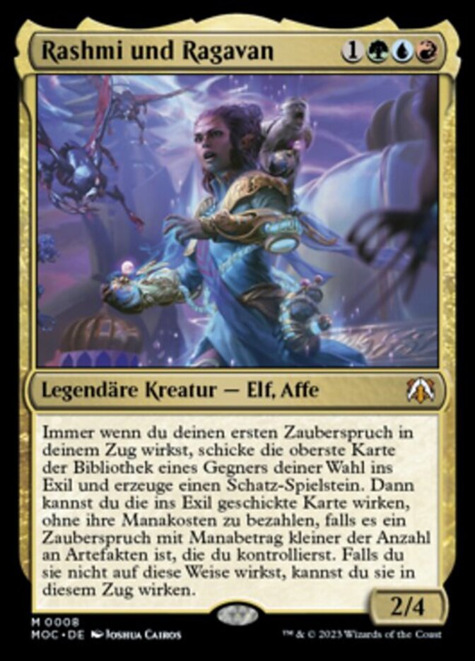 | Rules | Whenever you cast your first spell during each of your turns, exile the top card of target opponent's library and create a Treasure token. Then you may cast the exiled card without paying its mana cost if it's a spell with mana value less than the number of artifacts you control. If you don't cast it this way, you may cast it this turn. |