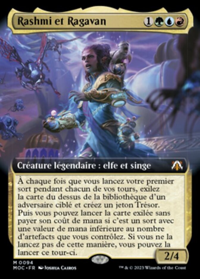 | Rules | Whenever you cast your first spell during each of your turns, exile the top card of target opponent's library and create a Treasure token. Then you may cast the exiled card without paying its mana cost if it's a spell with mana value less than the number of artifacts you control. If you don't cast it this way, you may cast it this turn. |