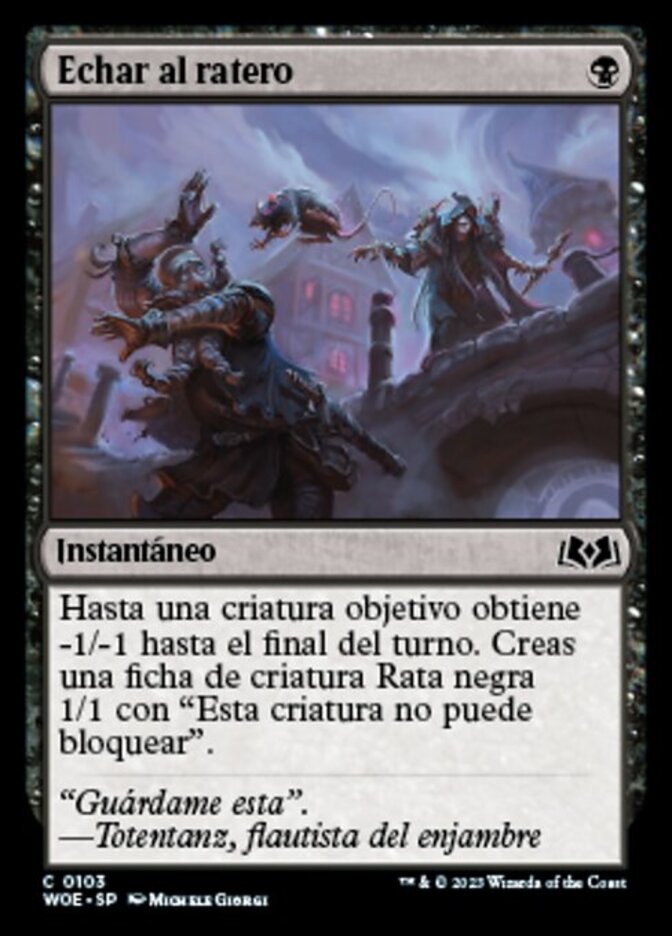 | Rules | Up to one target creature gets -1/-1 until end of turn. You create a 1/1 black Rat creature token with "This creature can't block." |