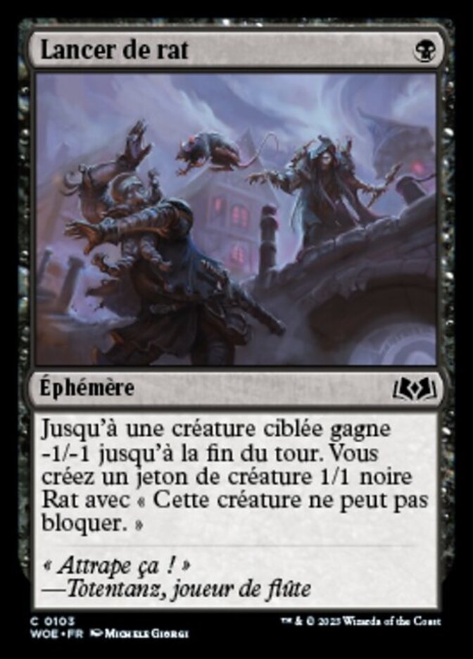 | Rules | Up to one target creature gets -1/-1 until end of turn. You create a 1/1 black Rat creature token with "This creature can't block." |