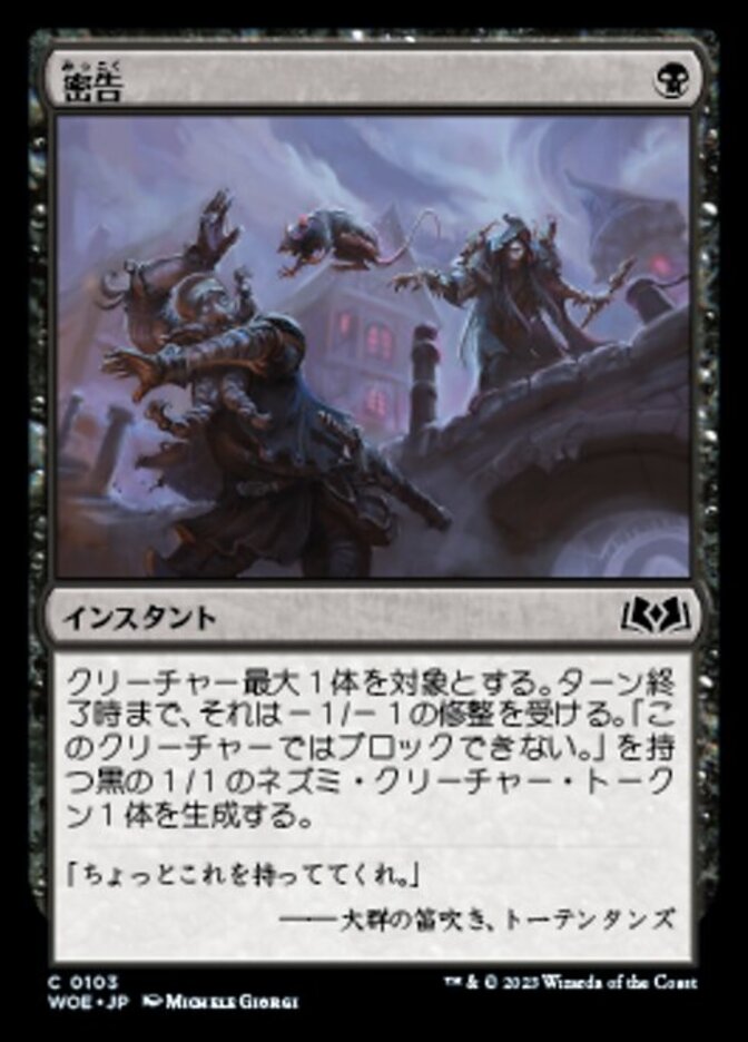 | Rules | Up to one target creature gets -1/-1 until end of turn. You create a 1/1 black Rat creature token with "This creature can't block." |