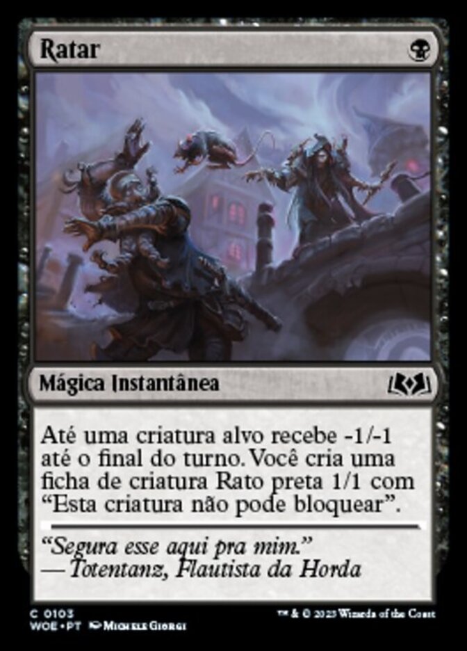 | Rules | Up to one target creature gets -1/-1 until end of turn. You create a 1/1 black Rat creature token with "This creature can't block." |