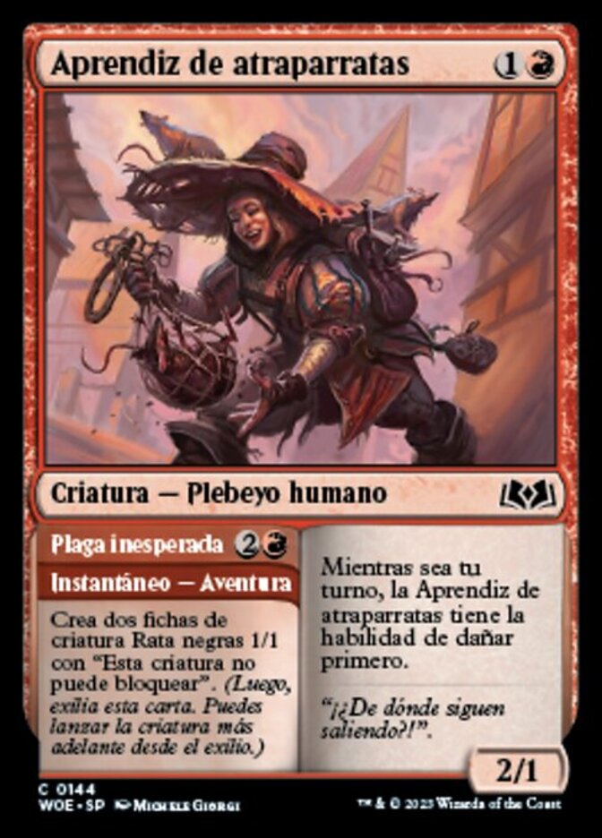 | Rules | As long as it's your turn, Ratcatcher Trainee has first strike. // Create two 1/1 black Rat creature tokens with "This creature can't block." (Then exile this card. You may cast the creature later from exile.) |