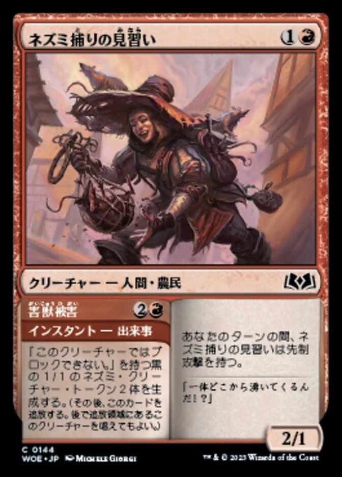 | Rules | As long as it's your turn, Ratcatcher Trainee has first strike. // Create two 1/1 black Rat creature tokens with "This creature can't block." (Then exile this card. You may cast the creature later from exile.) |