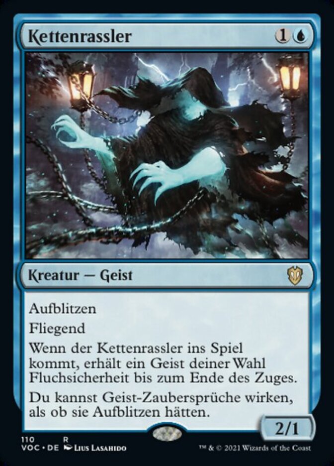 | Rules | Flash Flying When Rattlechains enters the battlefield, target Spirit gains hexproof until end of turn. You may cast Spirit spells as though they had flash. |