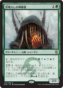 | Rules | : Add , , or . Morph (You may cast this card face down as a 2/2 creature for . Turn it face up any time for its morph cost.) When Rattleclaw Mystic is turned face up, add . |