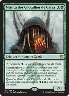 | Rules | : Add , , or . Morph (You may cast this card face down as a 2/2 creature for . Turn it face up any time for its morph cost.) When Rattleclaw Mystic is turned face up, add . |