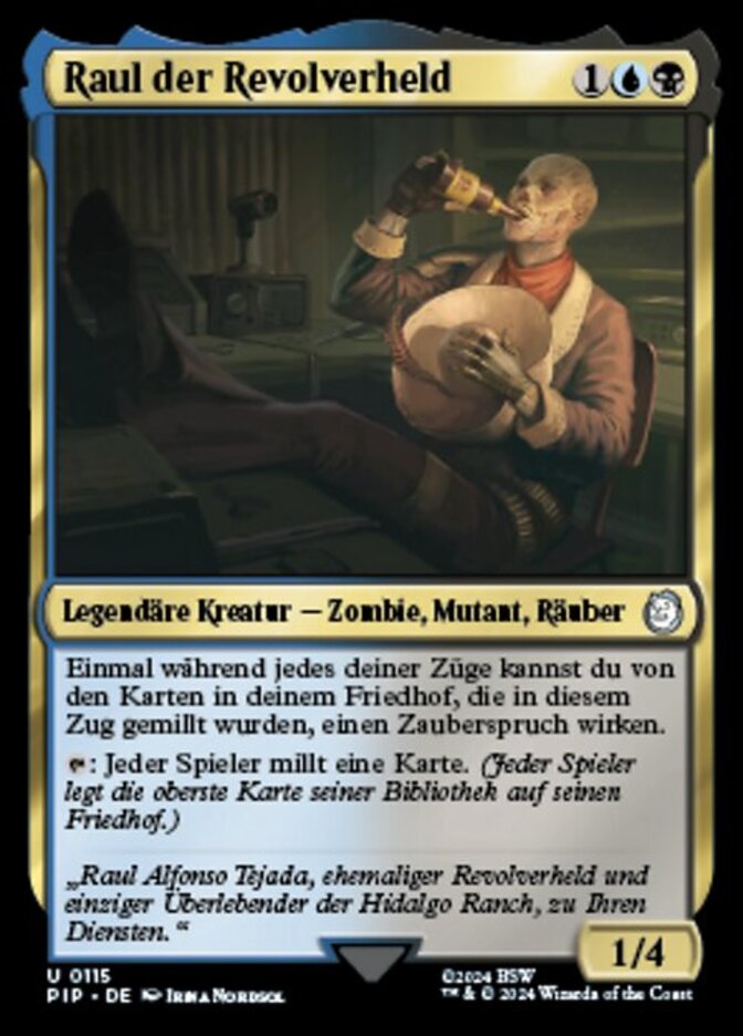 | Flavor | "Raul Alfonso Tejada, former gunslinger and sole survivor of Hidalgo Ranch, at your service." |