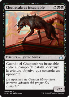 | Rules | When Ravenous Chupacabra enters the battlefield, destroy target creature an opponent controls. |