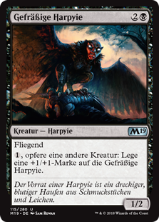 | Rules | Flying , Sacrifice another creature: Put a +1/+1 counter on Ravenous Harpy. |