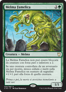 | Rules | Ravenous Slime can't be blocked by creatures with power 2 or less. If a creature an opponent controls would die, instead exile it and put a number of +1/+1 counters equal to that creature's power on Ravenous Slime. |