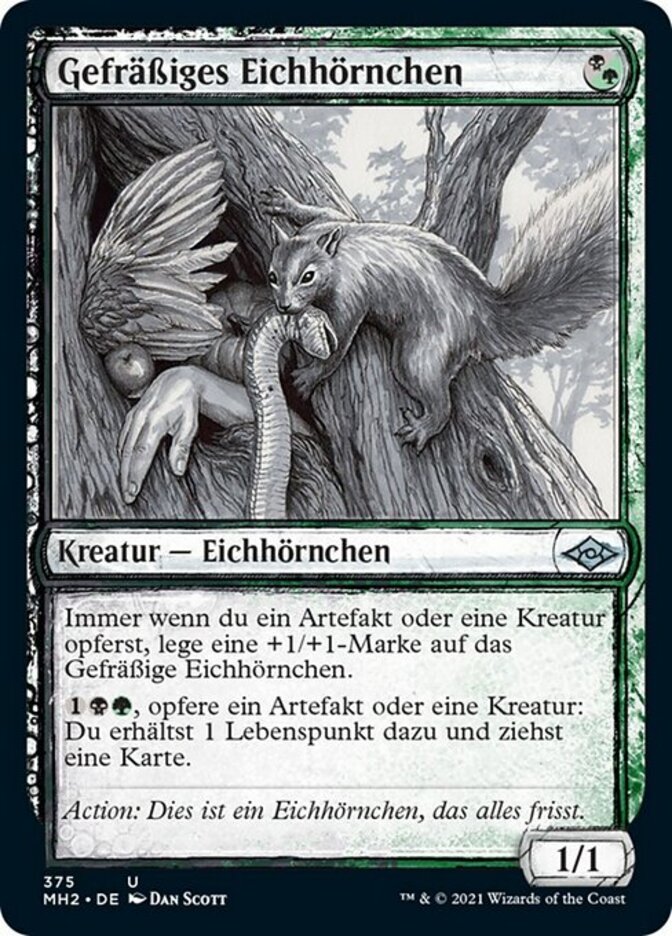 Rules Whenever you sacrifice an artifact or creature, put a +1/+1 counter on Ravenous Squirrel.