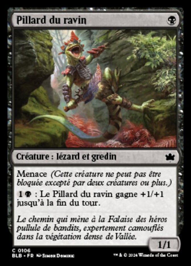 | Rules | Menace (This creature can't be blocked except by two or more creatures.) : Ravine Raider gets +1/+1 until end of turn. |