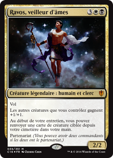 | Rules | Flying Other creatures you control get +1/+1. At the beginning of your upkeep, you may return target creature card from your graveyard to your hand. Partner (You can have two commanders if both have partner.) |