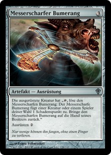| Rules | Equipped creature has ", Unattach Razor Boomerang: It deals 1 damage to any target. Return Razor Boomerang to its owner's hand." Equip |