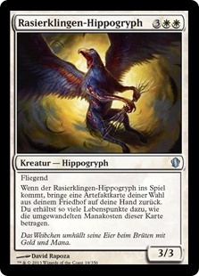 | Rules | Flying When Razor Hippogriff enters the battlefield, return target artifact card from your graveyard to your hand. You gain life equal to that card's mana value. |