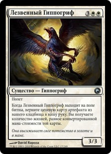 | Rules | Flying When Razor Hippogriff enters the battlefield, return target artifact card from your graveyard to your hand. You gain life equal to that card's mana value. |