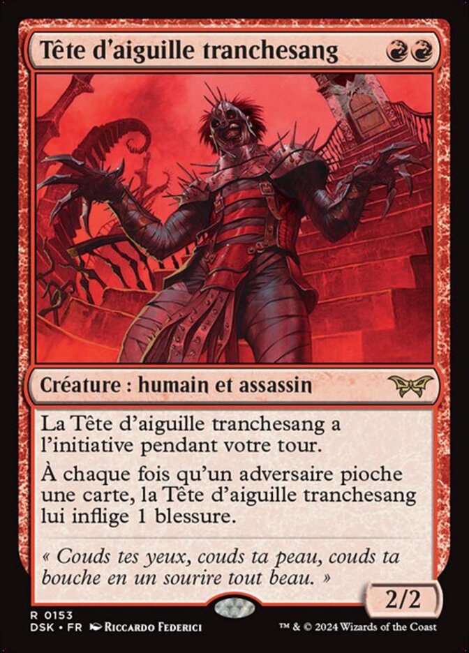 | Rules | Razorkin Needlehead has first strike during your turn. Whenever an opponent draws a card, Razorkin Needlehead deals 1 damage to them. |