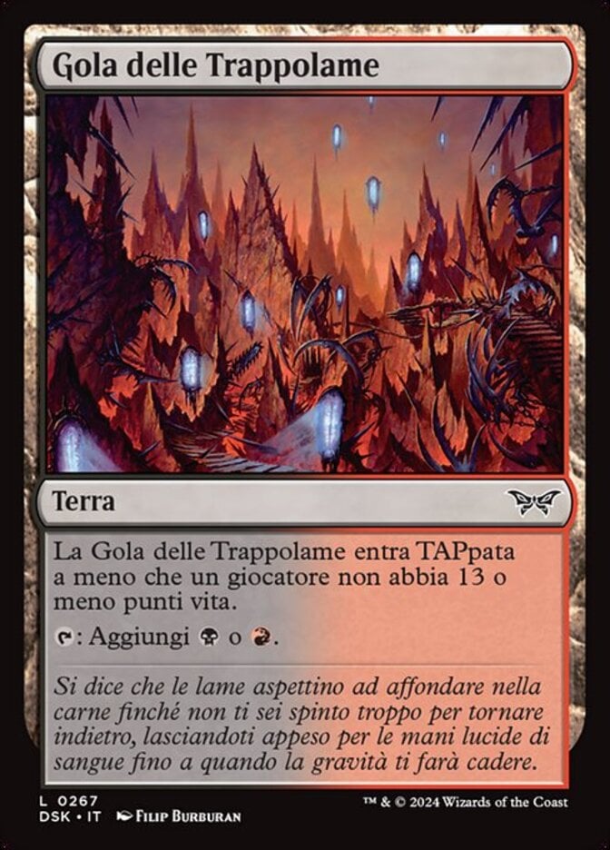 | Rules | Razortrap Gorge enters tapped unless a player has 13 or less life. : Add or . |