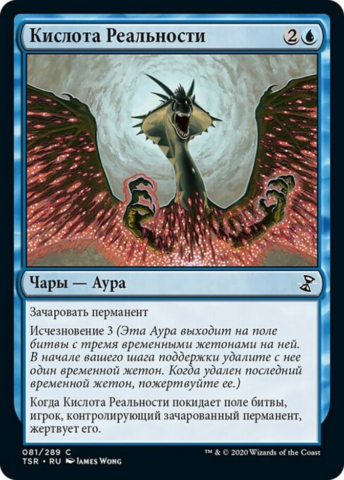 | Rules | Enchant permanent Vanishing 3 (This Aura enters the battlefield with three time counters on it. At the beginning of your upkeep, remove a time counter from it. When the last is removed, sacrifice it.) When Reality Acid leaves the battlefield, enchanted permanent's controller sacrifices it. |