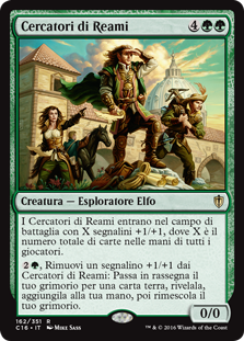 | Rules | Realm Seekers enters the battlefield with X +1/+1 counters on it, where X is the total number of cards in all players' hands. , Remove a +1/+1 counter from Realm Seekers: Search your library for a land card, reveal it, put it into your hand, then shuffle. |