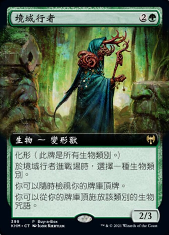 | Rules | Changeling (This card is every creature type.) As Realmwalker enters the battlefield, choose a creature type. You may look at the top card of your library any time. You may cast creature spells of the chosen type from the top of your library. |