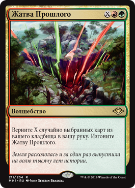 | Rules | Return X cards at random from your graveyard to your hand. Exile Reap the Past. |