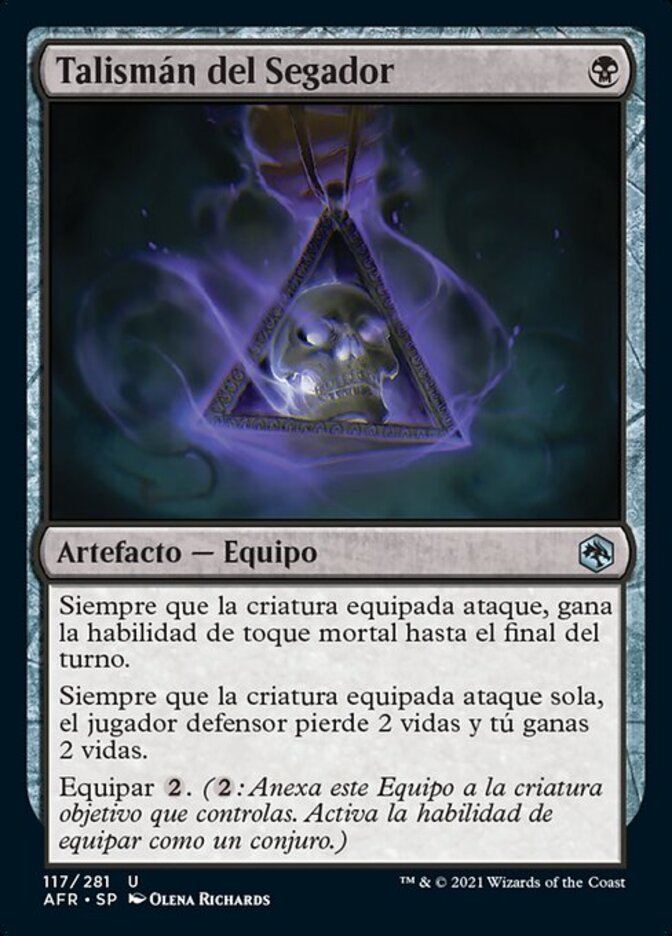 | Rules | Whenever equipped creature attacks, it gains deathtouch until end of turn. Whenever equipped creature attacks alone, defending player loses 2 life and you gain 2 life. Equip (: Attach to target creature you control. Equip only as a sorcery.) |