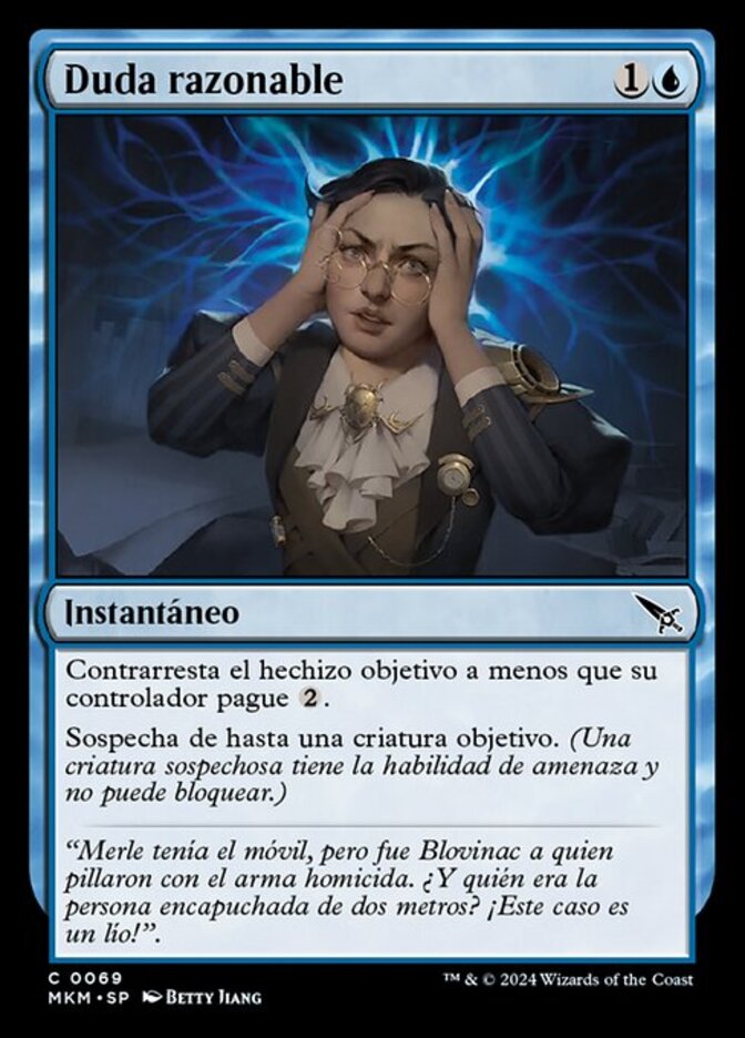 | Rules | Counter target spell unless its controller pays . Suspect up to one target creature. (A suspected creature has menace and can't block.) |