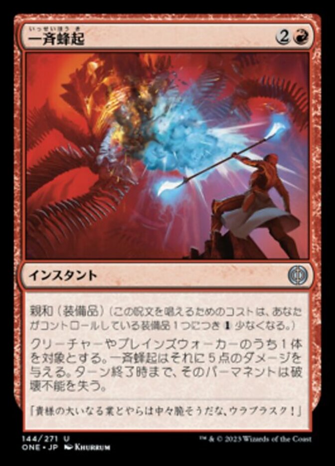 | Rules | Affinity for Equipment (This spell costs less to cast for each Equipment you control.) Rebel Salvo deals 5 damage to target creature or planeswalker. That permanent loses indestructible unil end of turn. |