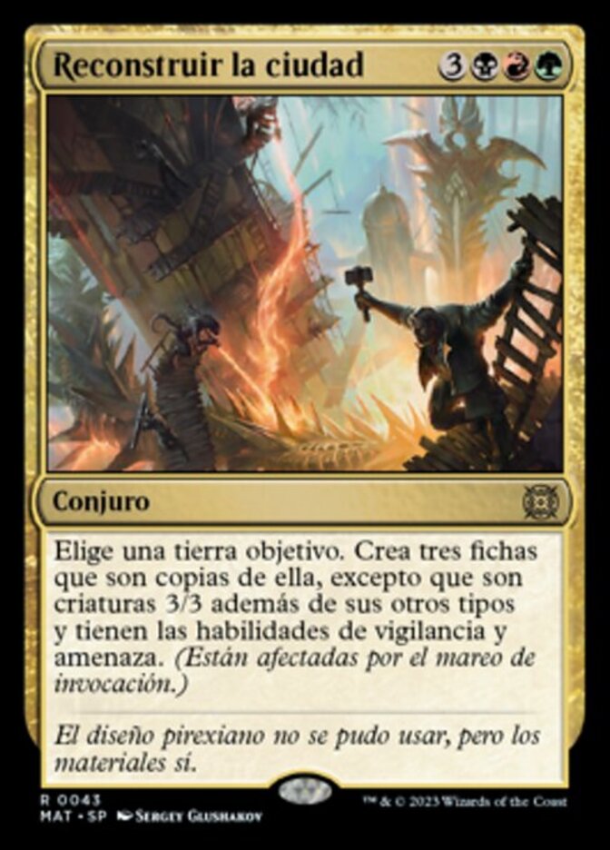 | Rules | Choose target land. Create three tokens that are copies of it, except they're 3/3 creatures in addition to their other types and they have vigilance and menace. (They're affected by summoning sickness.) |